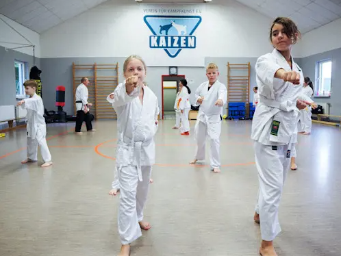 In den Kindergruppen üben wir „Tricks“ und Techniken aus dem Karatebaukasten; erste Selbstverteidigungstechniken ergänzen das Training. Durch eine gesunde, moderne Mischung von Trainingsmethoden erhalten die Kinder neben höherem Selbstbewusstsein auch eine verbesserte Koordination, Kraft und Ausdauer. Übungen mit Partner und an Schlagpolstern fördern Respekt und Toleranzverhalten – Werte, die uns wichtig sind.